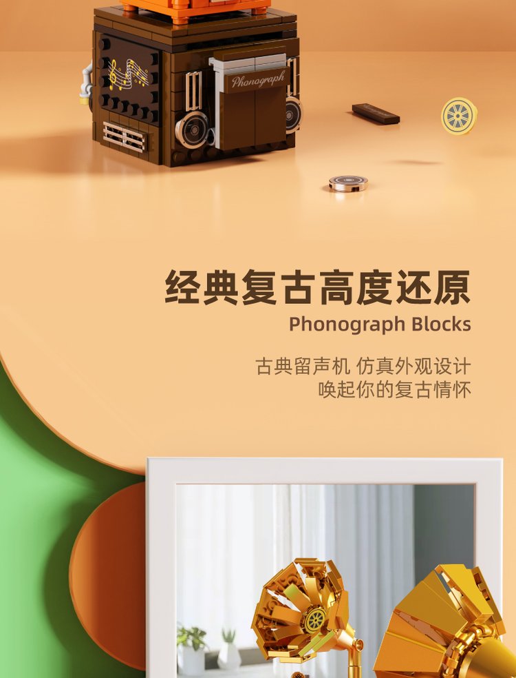 森宝积木 蓝牙音箱留声机 708601C 货集礼品刻字新年送客户伴手礼品 MY-YXKJ-(T)-124